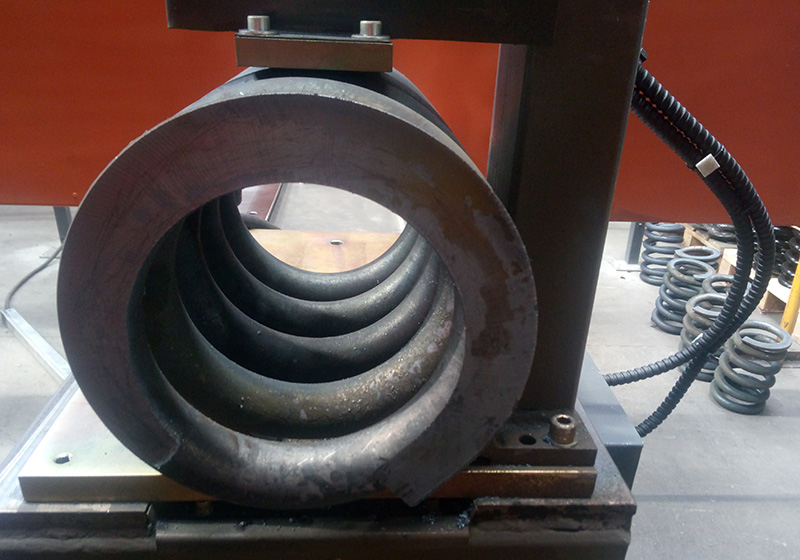 Patogiam gaminių įkelimui buvo suprojektuota speciali pneumatinė įranga su atrama, padedančia nustatyti spyruoklės «uodėgytės» buvimą, kas yra būtina norint užtikrinti pjovimo proceso adaptatyvumą.
