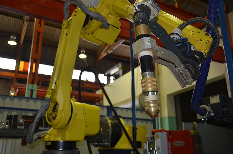 Robotizuoto komplekso sudėtyje esantis pramoninis robotas turi plazminio pjovimo įrangos komplektą, paremtą  Kjellberg Hi Focus inverteriniu šaltiniu.
