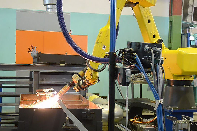 Robotizuotas kompleksas naudojamas kaip universali įvairių formų ir dydžių mažaserijinių gaminių plazminio pjovimo sistema.