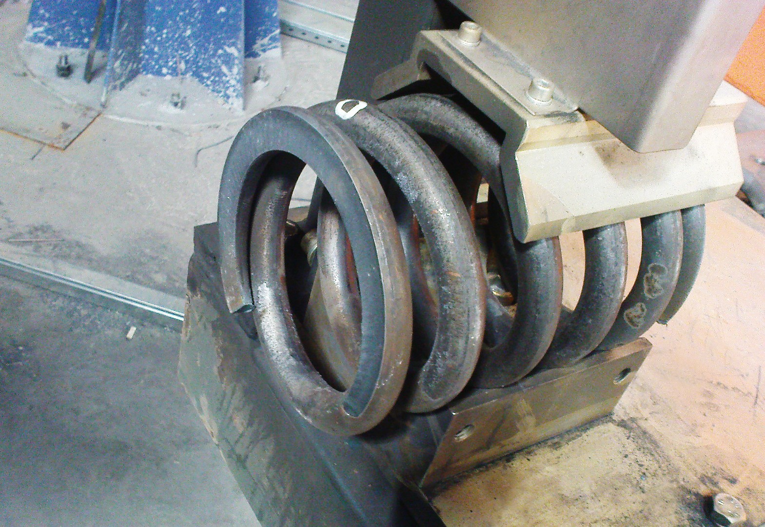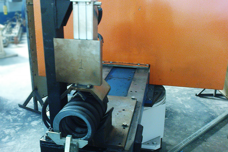 Patogiam gaminių įkelimui buvo suprojektuota speciali pneumatinė įranga su atrama, padedančia nustatyti spyruoklės «uodėgytės» buvimą, kas yra būtina norint užtikrinti pjovimo proceso adaptatyvumą.