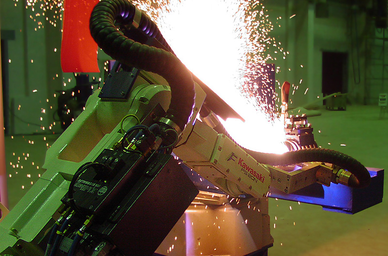 Pramoninis robotas yra aprūpintas šiuolaikiniu didelio našumo inverteriniu plazminio pjovimo šaltiniu.