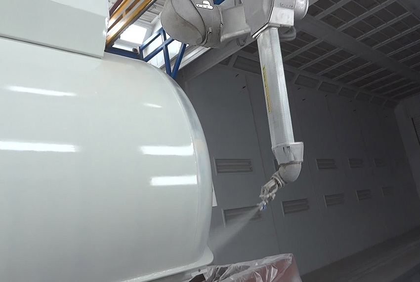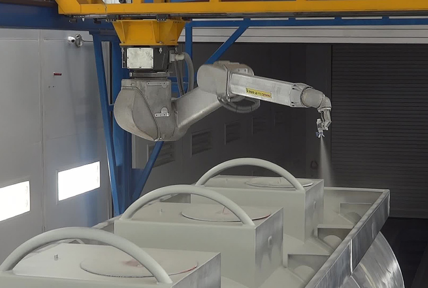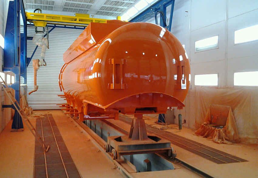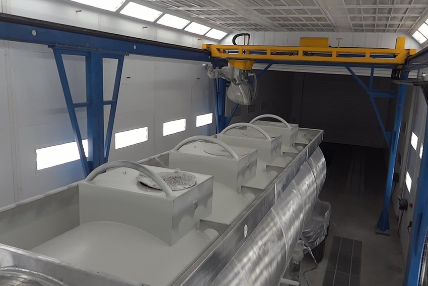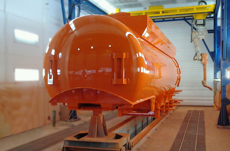 Robotizuoto komplekso viduje esantis pramoninis robotas užtikrina geležinkelių cisternų dažymą pilnai automatiniame režime.