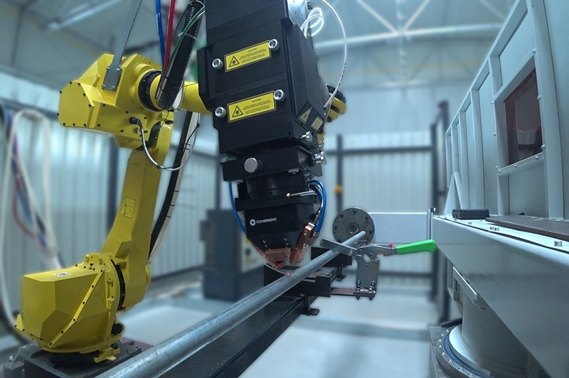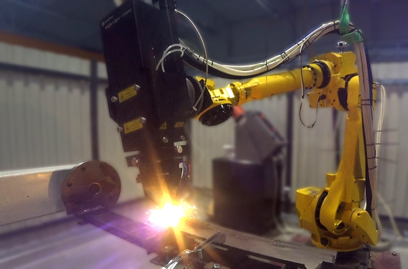 Robotizuoto komplekso sudėtyje esantis pramoninis robotas užtikrina lazerinį mechanizuotų plūgų paviršių prilydymą su priedu pilnai automatiniame režime.