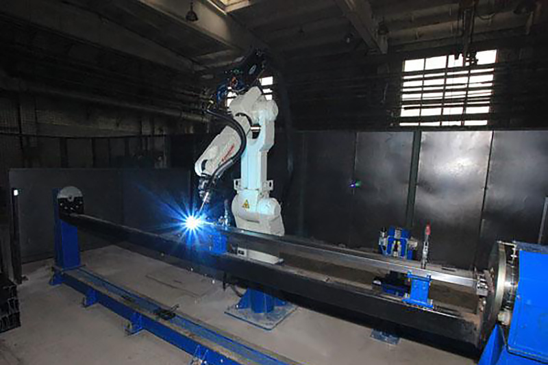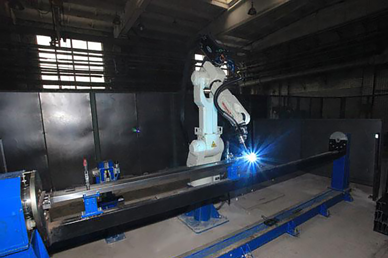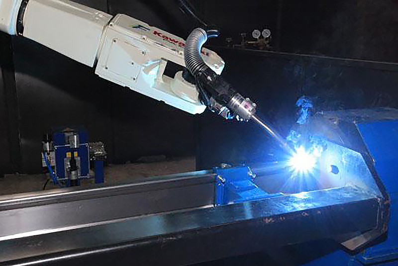 Robotizuoto komplekso sudėtyje esantis pramoninis robotas užtikrina stelažų traversų suvirinimą pilnai automatiniame režime.