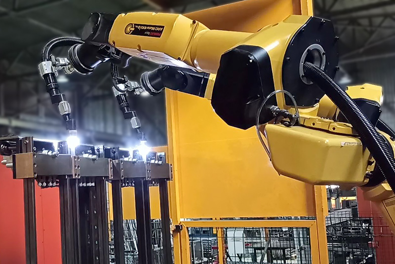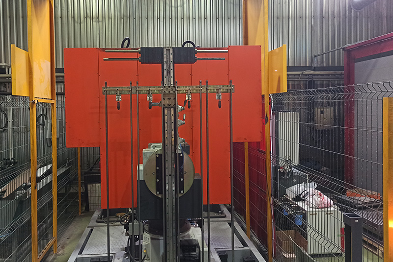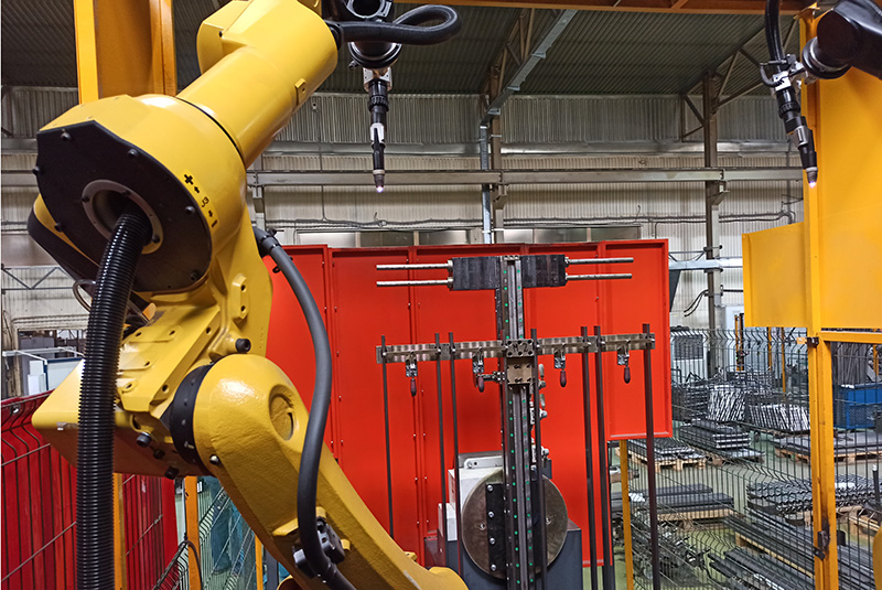 Robotizuoto komplekso sudėtyje esantys pramoniniai robotai užtikrina plazminį radiatorių kolonėlių suvirinimą pilnai automatiniame režime.